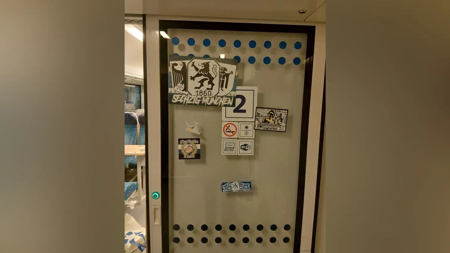 Laut Polizei waren in drei Zugabteilen Fenster und Tische mit dem Schriftzug "TSV 1860" beschmiert sowie zahlreiche Aufkleber angebracht worden. Zudem wurde nach Angaben der Polizei eine verschlossene Tür mutwillig aufgehebelt und dadurch stark beschädigt. Alle drei Waggons waren zudem stark vermüllt.