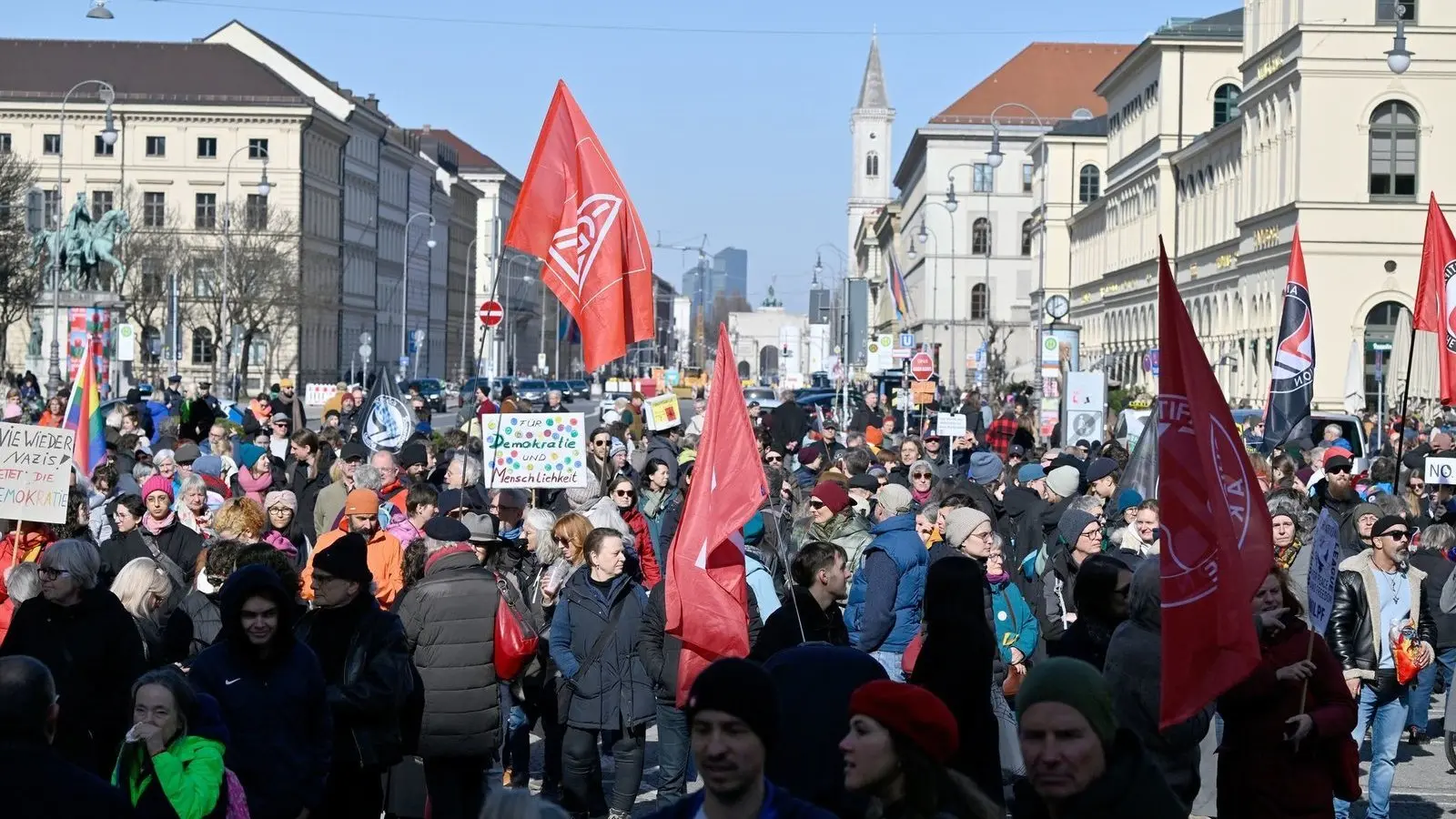 Gegen einen Rechtsruck und eine Spaltung der Gesellschaft sind in München am Sonntag zahlreiche Menschen auf die Straße gegangen. Bei der Versammlung des Bündnisses "Gemeinsam gegen rechts" kamen laut Polizeiangaben rund 3.500 Menschen auf dem Odeonsplatz zusammen.