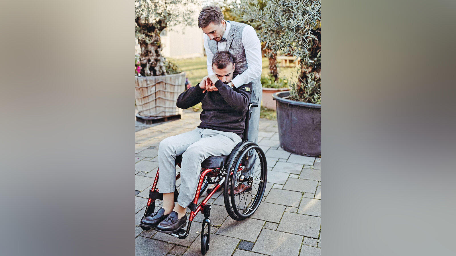 Josef Schieder sitzt bei der Hochzeit seines besten Freundes im Rollstuhl. Im Mai hatte der 27-Jährige einen schweren Unfall.