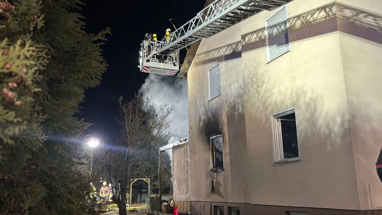 Bei den Löscharbeiten fanden Feuerwehrkräfte den toten Bewohner im Obergeschoss des Hauses. Dieser lebte den Angaben nach allein in dem Haus. Die Löscharbeiten dauerten bis in den späten Abend an.