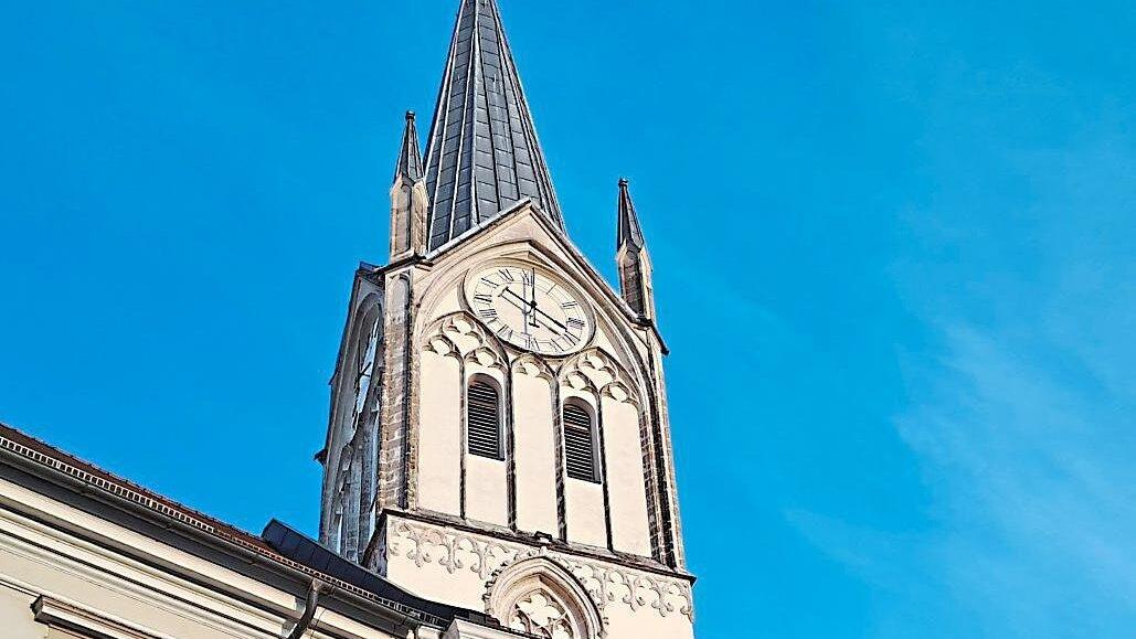 Der gotische Kirchturm ragt über die Dächer der Klosteranlage hinaus, in der sich auch ein Teil der Uni befindet.