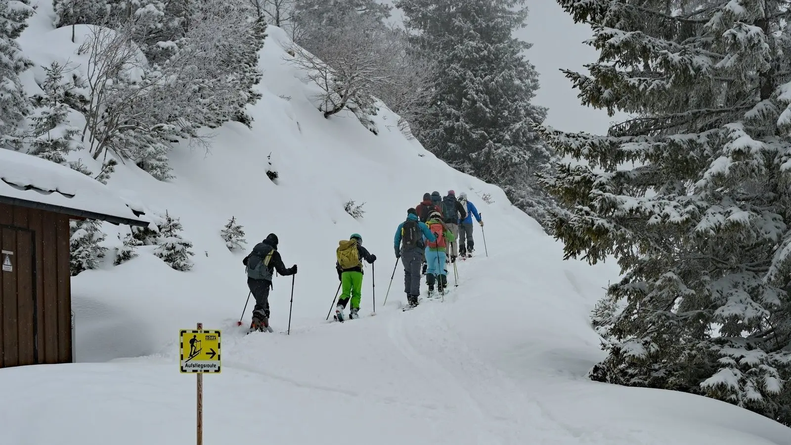 Tourengeher sind bei Garmisch-Partenkirchen auf einer ausgewiesenen Route unterwegs.