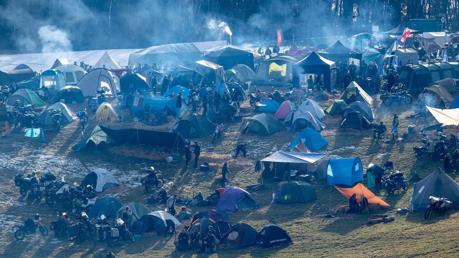 Bei dem bis Sonntag (2. Februar) dauernden Treffen werden auch Pokale verliehen, unter anderem für den schönsten Motorrad-Eigenbau, für den ältesten Teilnehmer und für die weiteste Anreise. Traditionell zelten viele der Motorrad-Fans auf dem hügeligen Wiesengelände. Nieselregen machte das Treffen laut dem Vorsitzenden des BVDM, Michael Lenzen, zeitweise zu einer schlammigen Angelegenheit.