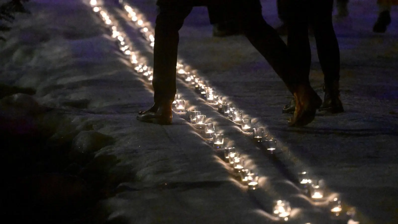 Am Ende setzten die Besucher Kerzen in ein Stück Loipe aus extra von Helfern angekarrtem Schnee - eine leuchtende Spur in der Nacht.