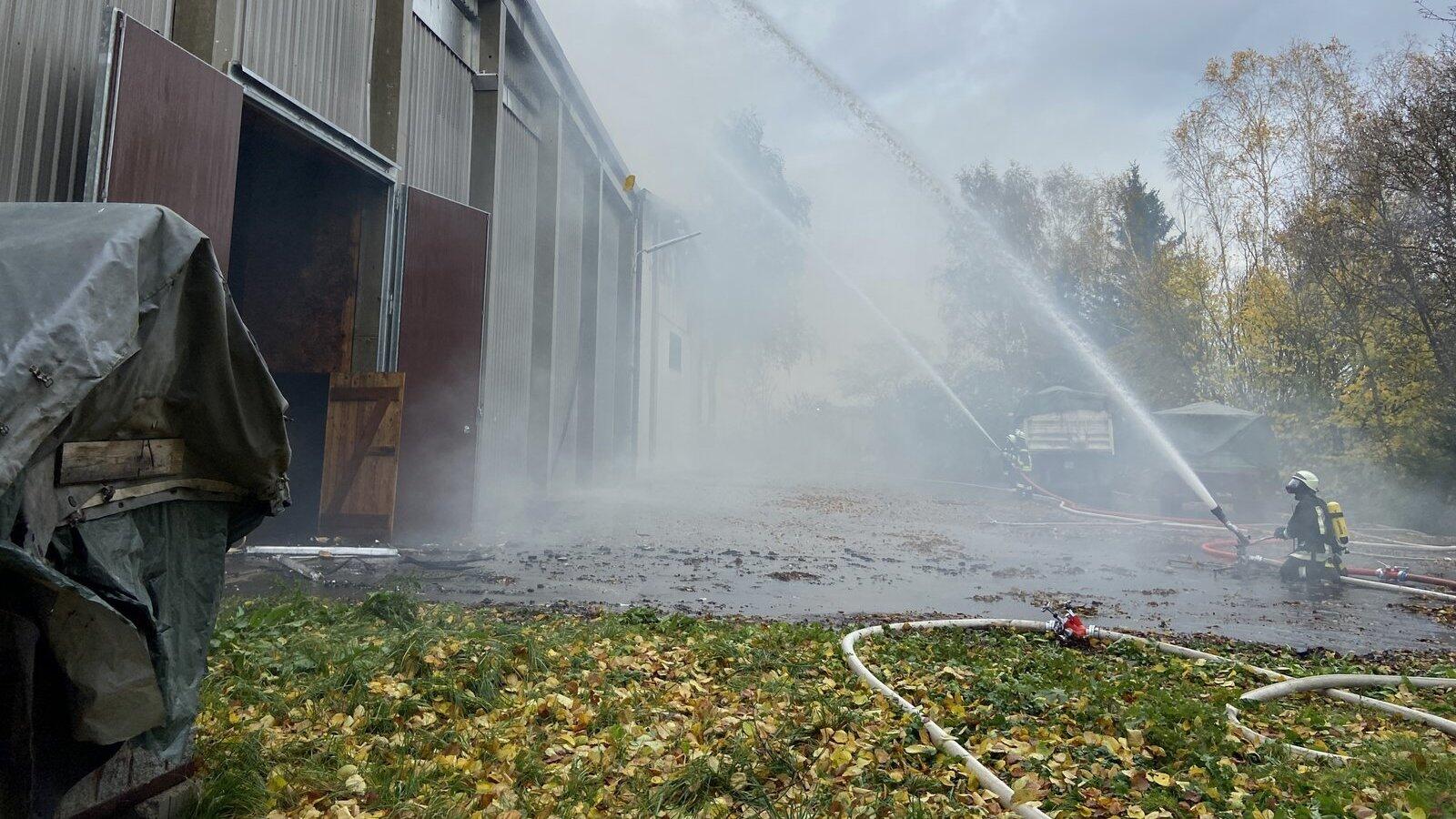 Großeinsatz für die Feuerwehren: Am Ortseingang von Eslarn (Kreis Neustadt/Waldnaab) hat ein Großfeuer in einer Kartoffellagerhalle einen Schaden von mindestens einer Million Euro angerichtete.
