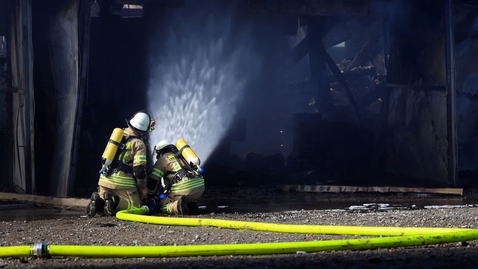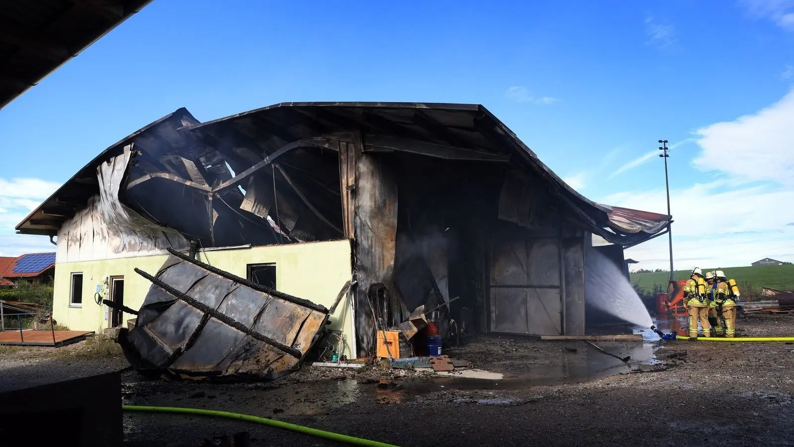 In Schwaben ist eine Maschinenhalle bei einem landwirtschaftlichen Anwesen ausgebrannt. Verletzt worden sei niemand, teilte die Polizei mit. Laut einem Sprecher der Polizei entwickelte sich am Vormittag viel Rauch in Bidingen (Landkreis Ostallgäu). Für die Löscharbeiten musste die Halle nahezu vollständig niedergerissen werden.