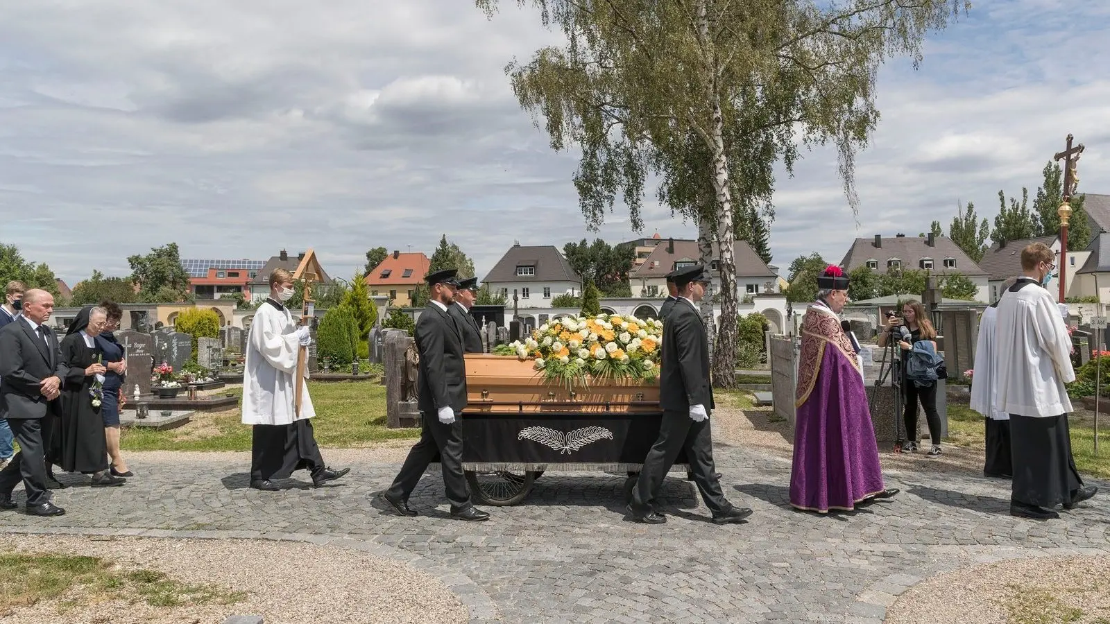 Um 9.30 Uhr fand am Mittwoch die Beerdigung Georg Ratzingers im Dom St. Peter mit der Beisetzung am unteren katholischen Friedhof statt. Zum Abschluss des Gottesdienstes hielten Heiß und Erzbischof Georg Gänswein ein Grußwort. Gänswein las dabei den letzten Brief seines Bruders in Rom an Georg Ratzinger vor. Immer wieder musste er pausieren, stockte mitten im Satz und kämpfte mit den Tränen. Die letzten Worte kamen ihm erstickt über die Lippen. Betroffen und ergriffen hörten die Teilnehmer den Grußworten zu. Manch einer kämpfte mit den Tränen.