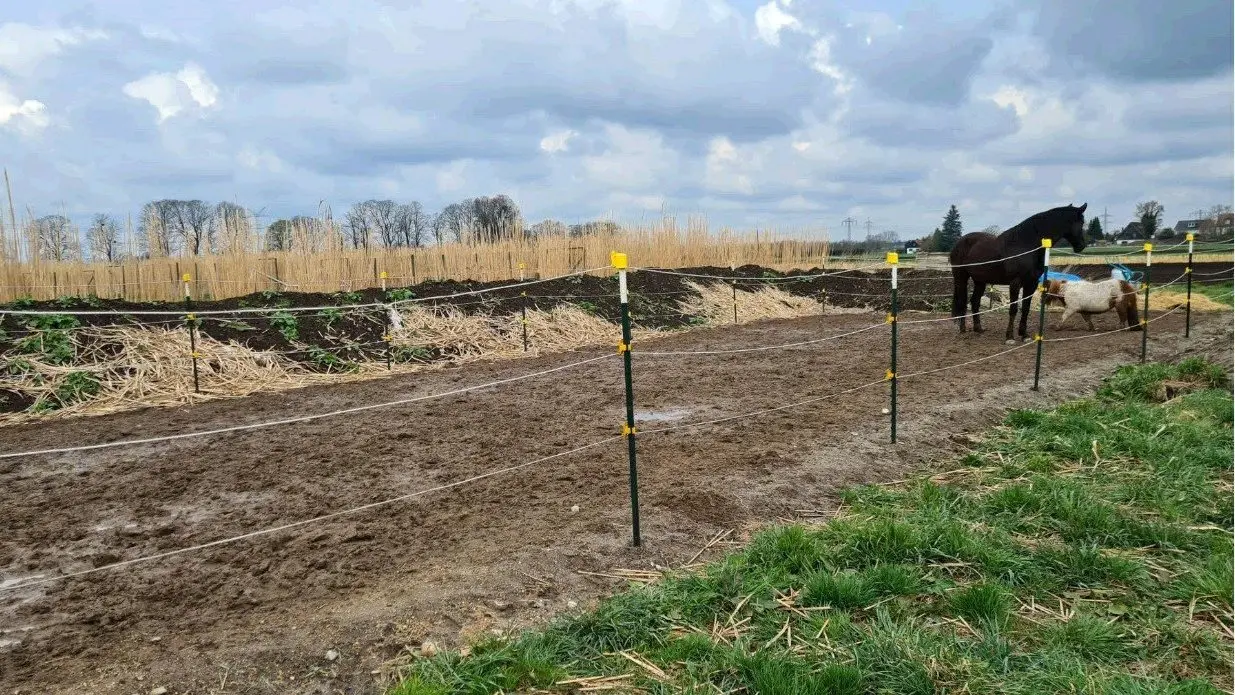 Durch diese Pferdekoppel im Münchner Stadtteil Allach rannten am Dienstag drei Hunde. 2 Minishetland-Ponys und ein Pferd büxten daraufhin aus der Koppel aus. Das Bild zeigt die beiden Tiere, die nach ihrer Flucht wieder erfolgreich eingefangen werden konnten.