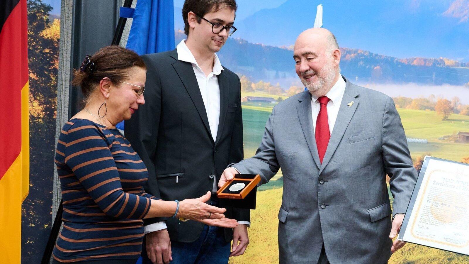 Mit Magdalena Große und Hans-Georg Früchte hat der Staat Israel zwei Menschen aus Bayern posthum als „Gerechte der Völker“ ausgezeichnet - der Titel wird Menschen verliehen, die Jüdinnen und Juden vor Verfolgung gerettet haben. Der Titel ist verbunden mit Yad-Vashem-Medaillen, die in der bayerischen Landesvertretung in Berlin vom israelischen Botschafter Ron Prosor an die Hinterbliebenen der beiden Geehrten übergeben wurden.