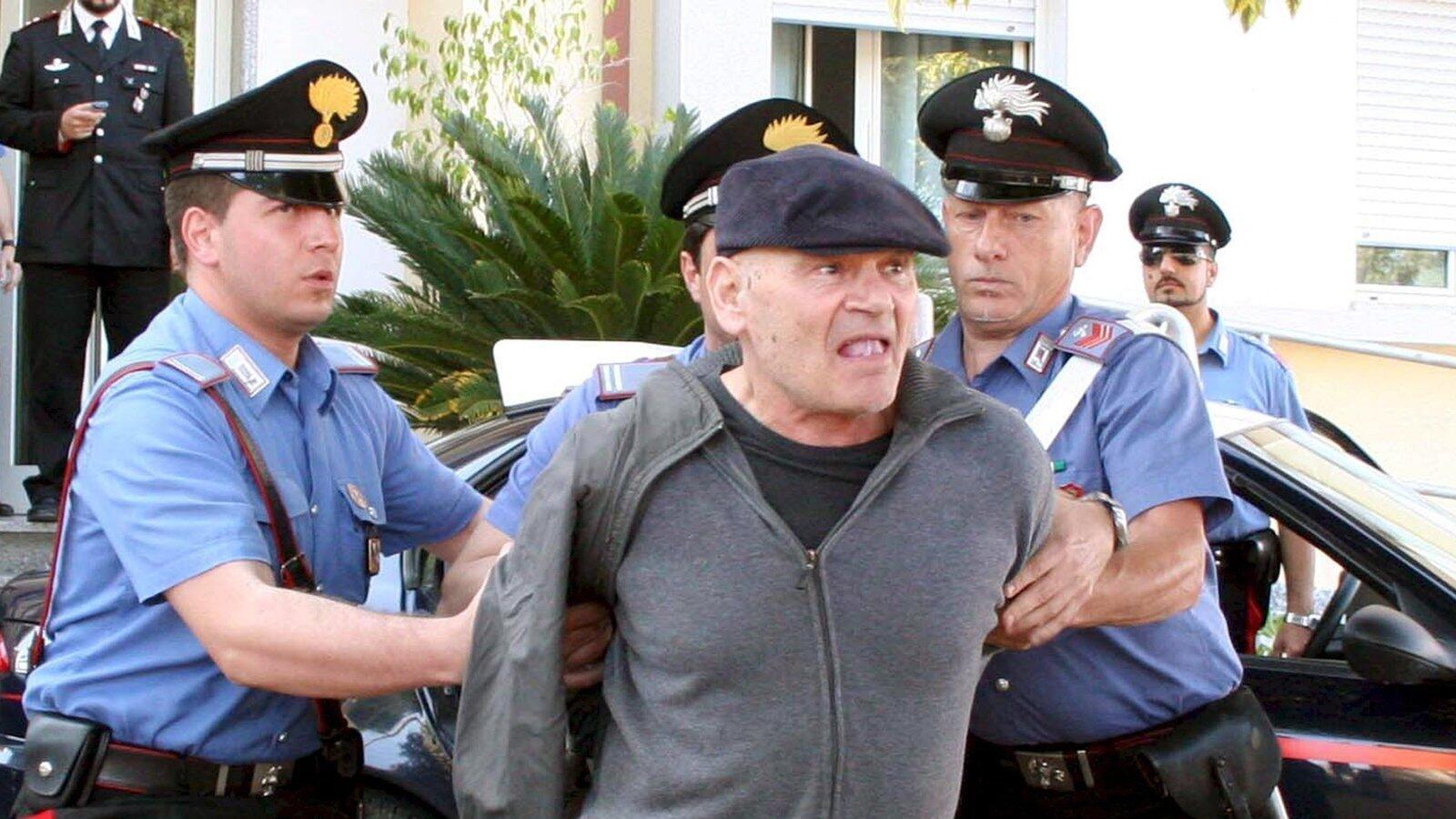 Italienische Polizisten verhaften den 'Ndrangheta-Clan-Boss Giuseppe Nirta 2008 in Kalabrien. Seine Organisation steckte hinter den Mafia-Morden von Duisburg 2007.