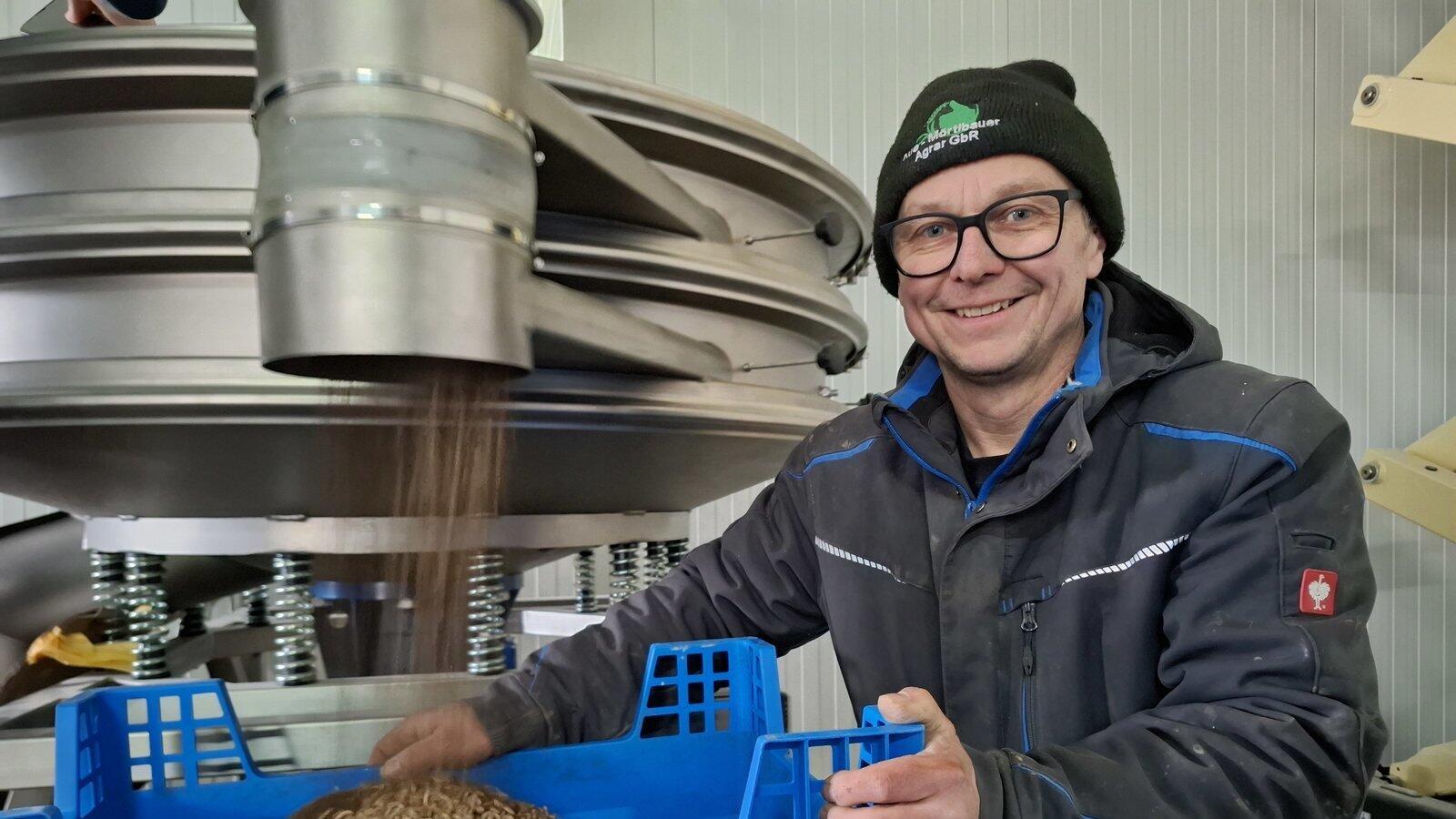Das Ergebnis von drei Jahren Arbeit ist mit dem bloßen Auge kaum zu erkennen. Manfred Aue wühlt mit dem Finger in der süßlich duftenden Weizenmasse, zückt seine Taschenlampe, zoomt mit seiner Handykamera ganz nah heran.