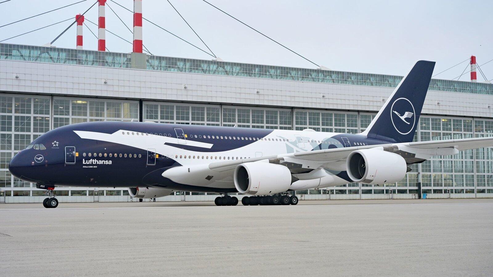 Lufthansa hat einen Airbus A380 zum Jubiläum mit einem riesigen Kranich lackiert.