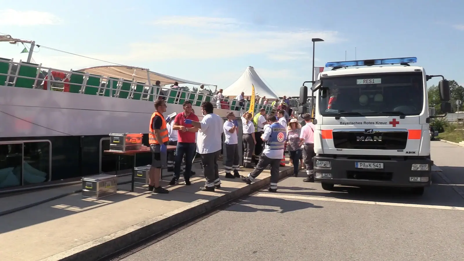 Großeinsatz auf einem Donaudampfer: 40 Passagiere eines Kreuzfahrtschiffes sind am Freitag in Passau wegen Magen-Darm-Beschwerden behandelt worden.