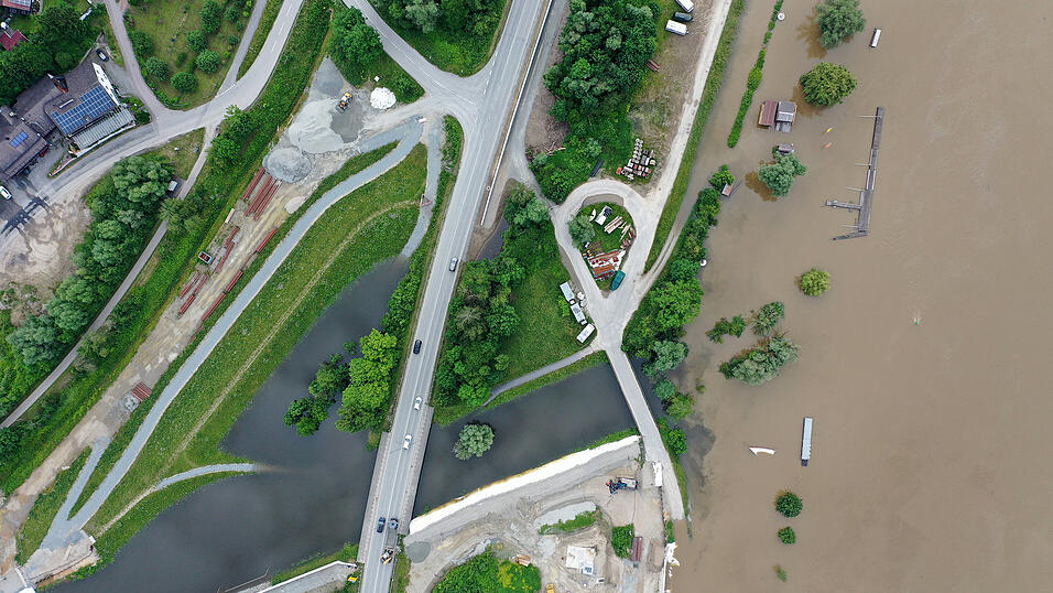 Land unter in Ostbayern - die Donau hat sich weite Landstriche einverleibt. Sehen Sie auf unseren Drohnenfotos, wie das Wasser die Region überschwemmt.