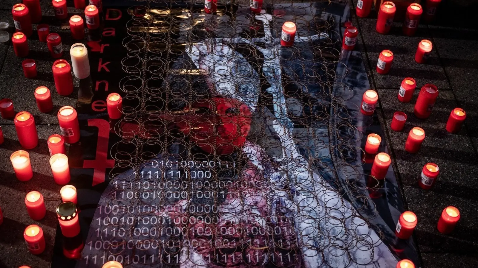 Teilnehmer einer Protestkundgebung haben an einem stilisierten Bild eines Geistlichen Kerzen für die Opfer von sexuellem Missbrauch in der Kirche entzündet. (Archivbild)