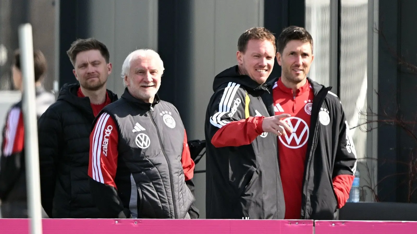 Beim ersten Training in Herzogenaurach fehlte der Frankfurter Nathaniel Brown, der beim 1:2 gegen Mainz 05 einen Schlag abbekommen hatte. Antonio Rüdiger und Kai Havertz absolvierten zur Belastungsteuerung individuelle Einheiten im Fitnessraum. Nach dem Training wird sich Kapitän Joshua Kimmich bei einer Pressekonferenz zu den großen Zielen bei der WM im Sommer in den USA, Mexiko und Kanada äußern.