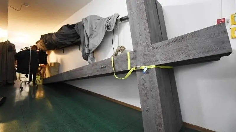 Drei große Holzkreuze liegen schon hinter der Bühne für die Passionsspiele 2022 bereit.