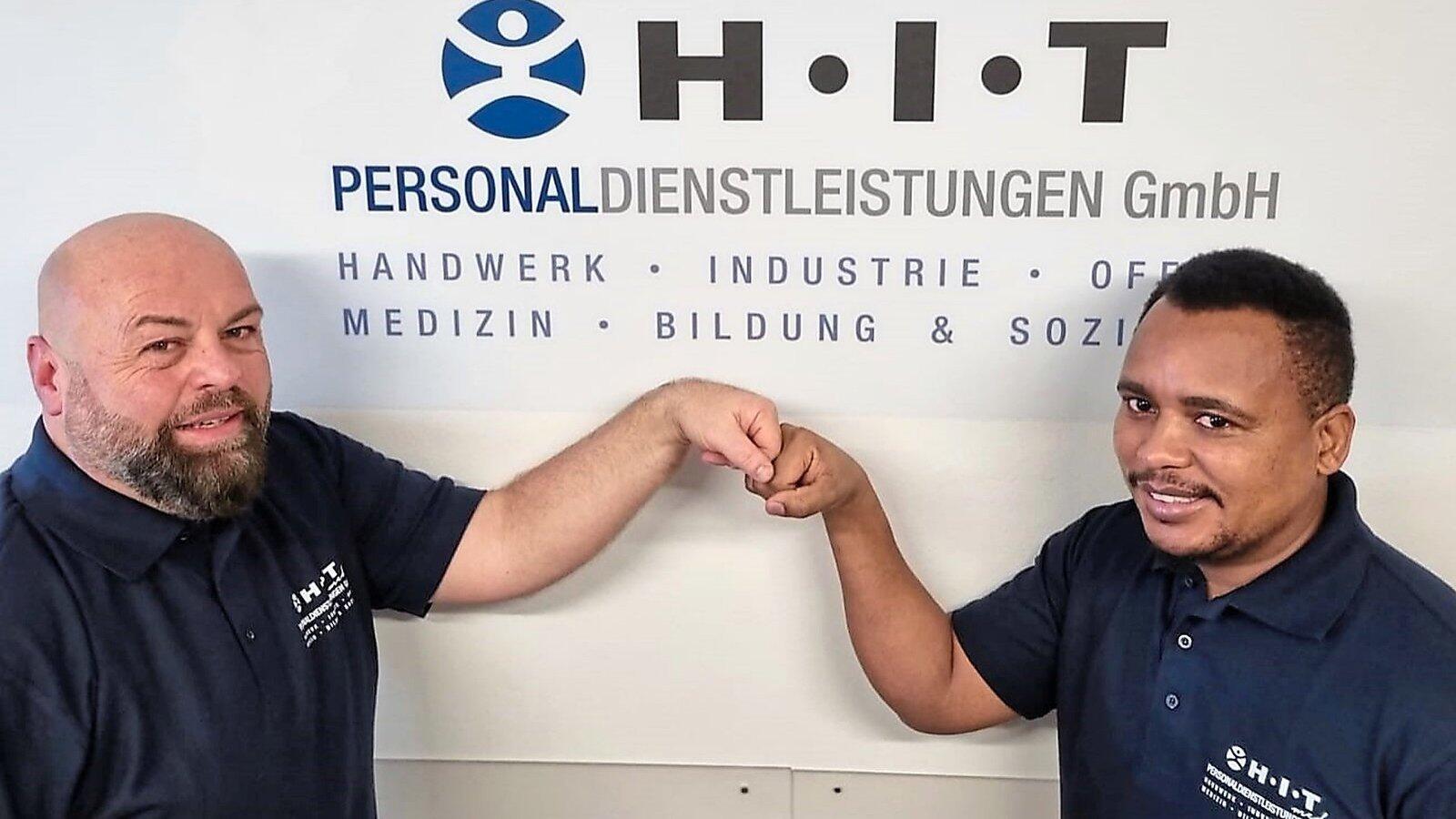 Stefan Huber (l.), Abteilungsleiter der Pflege-Zeitarbeitsfirma Hit, mit seinem Mitarbeiter Robert Harold Mongi.