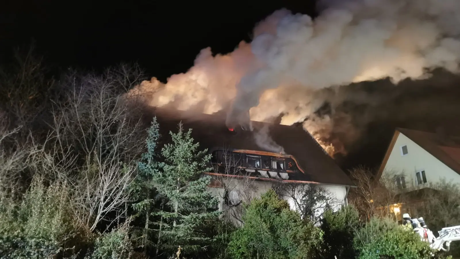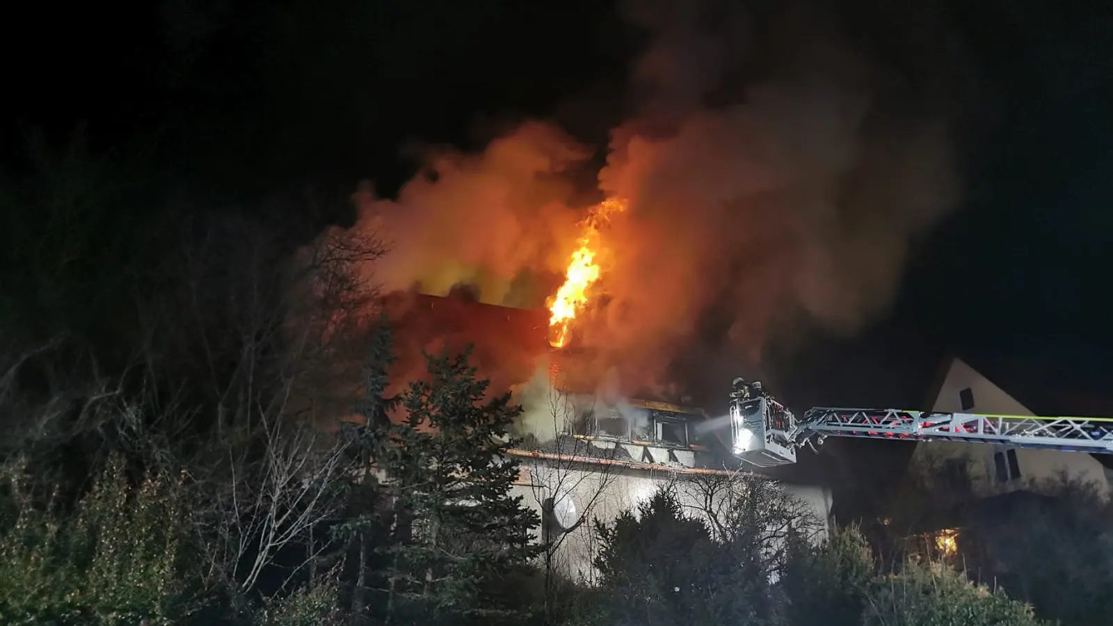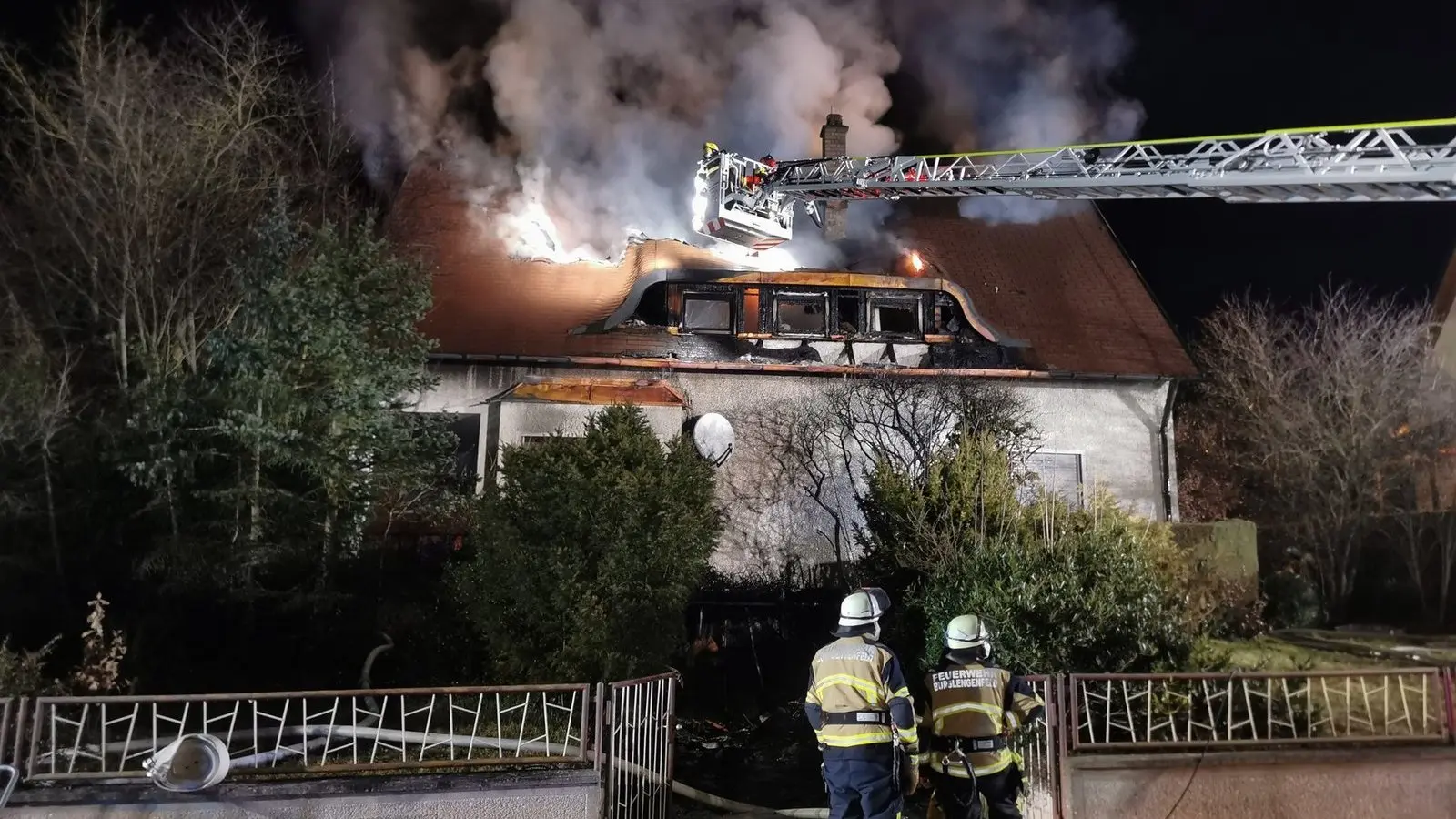 Nach Angaben der Polizei ging der Notruf bei der Integrierten Leitstelle (ILS) gegen 20.15 Uhr ein. Zu diesem Zeitpunkt schlugen bereits meterhohe Flammen aus dem Dachstuhl des Einfamilienhauses. Keiner der Bewohner wurde dabei verletzt. Etwa fünf Stunden dauerte der Einsatz für die hiesigen Feuerwehren, ehe der Brand gelöscht war. Der Sachschaden fällt ersten Schätzungen zufolge enorm aus. "Der Schaden dürfte sich auf ungefähr 200.000 Euro belaufen", berichtet eine Polizeisprecherin gegenüber idowa.