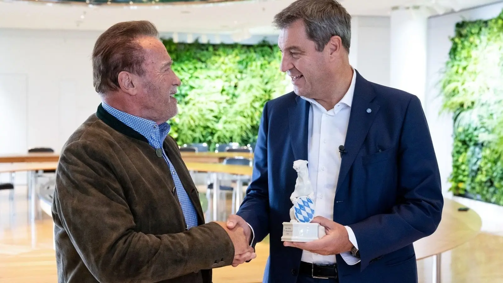 Rund ein Jahr vor der Landtagswahl in Bayern sieht Söder sogar eine Parallele zu Schwarzeneggers Paraderolle des "Terminators". "Ich habe auch selber immer versucht, das politische Motto "I'll be back" wahrzunehmen", sagt er in Anlehnung an das Kult-Zitat der Filmreihe, "Ich komme wieder". Der politisch bei den konservativen Republikanern verortete Arnie gibt das Lob zurück. "Ihr habts an guadn Ministerpräsidenten hier, ihr brauchts keinen zweiten."