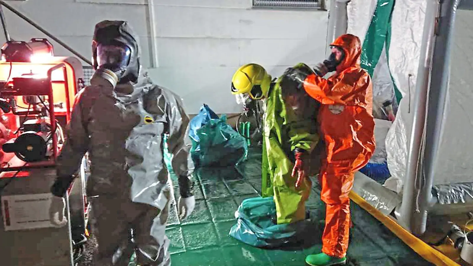 Gefahrgutspezialisten der Polizei untersuchten das Firmenareal und einen Container, in dem das Gefahrgut vermutet wurde.
