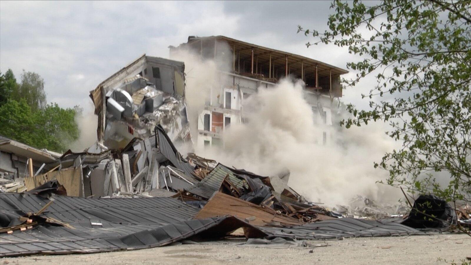 In Marktoberdorf scheiterte 2017 der Abriss des alten Krankenhauses zweimal. Trotz Sprengung blieb ein Teil des Gebäudes stehen.