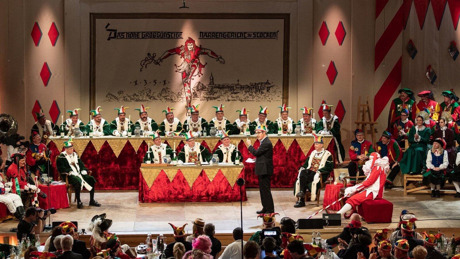 Der Prozess findet immer am sogenannten „Schmotzigen Dunschtig“ vor Publikum statt, also dem Donnerstag vor Rosenmontag. „Wir können die Enttäuschung aller nachvollziehen, die dieses Mal nicht zum Zuge kamen“, sagte der Narrenrichter. Als kleiner Trost: Die Veranstaltung werde am selben Abend (ab 20.15 Uhr) im SWR gezeigt und sei dann auch in der Mediathek zu finden.