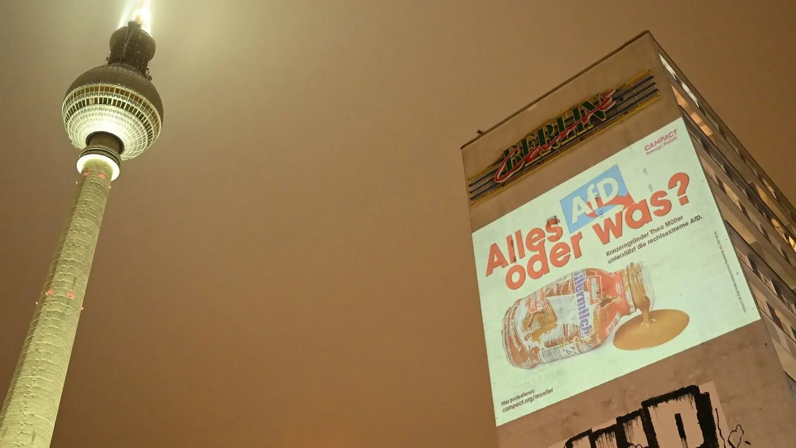 In Berlin war etwa eine entsprechende Projektion in der Nähe des Alexanderplatzes zu sehen. Auf den Motiven steht beispielsweise in Anlehnung an einen bekannten Müller-Werbeslogan „Alles AfD oder was?“. Darunter steht: „Konzerngründer Theo Müller unterstützt die rechtsextreme AfD.“ Wegen dieses Satzes verlangt der Berliner Rechtsanwalt Christian Schertz im Namen von Müller nun eine Unterlassungserklärung von Campact. Zunächst hatte die „Frankfurter Allgemeine Zeitung“ darüber berichtet.