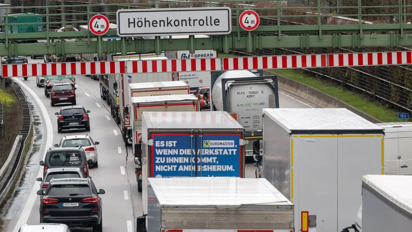 Innerhalb von zwei Stunden haben drei Lastwagen in der Nacht jeweils eine Höhenkontrolle vor Tunneln auf dem Münchner Autobahnring ausgelöst. Als sich die Schranken vor einem Tunnel gerade schlossen, habe zudem ein weiterer Lastwagen vor den Augen der Beamten versucht, noch schnell an der Sperre vorbeizukommen, teilte die Polizei mit. Dabei habe er mit seinem Fahrzeug eine der beiden Schranken berührt und sei geflüchtet, ohne sich um den entstandenen Schaden zu kümmern.