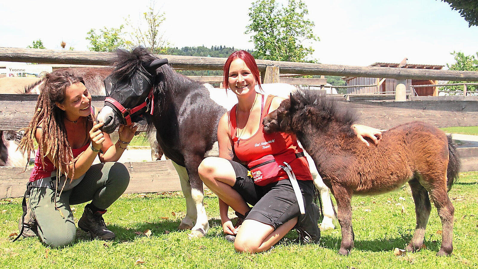 Zurück auf Gut Aiderbichl in Deggendorf: Jessy und Steffi mit den Minishetti-Damen Lucy und Hanna.