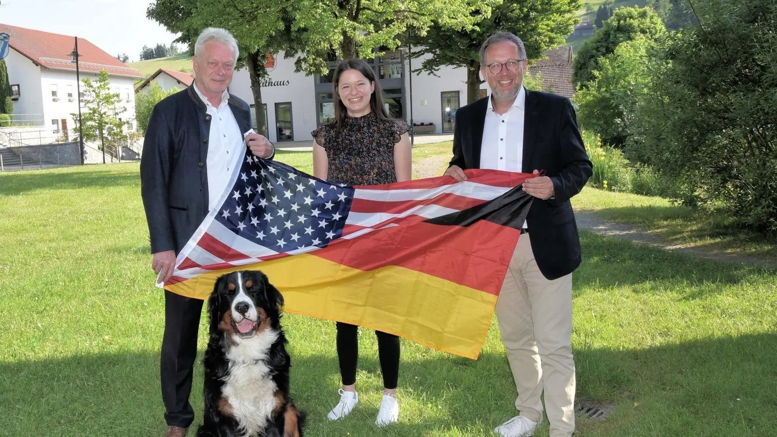 Evi Sagstetter mit ihrem Paten, dem Bundestagsabgeordneten Alois Rainer (links) und dem Bürgermeister ihres Heimatortes Mallersdorf-Pfaffenberg Christian Dobmeier.