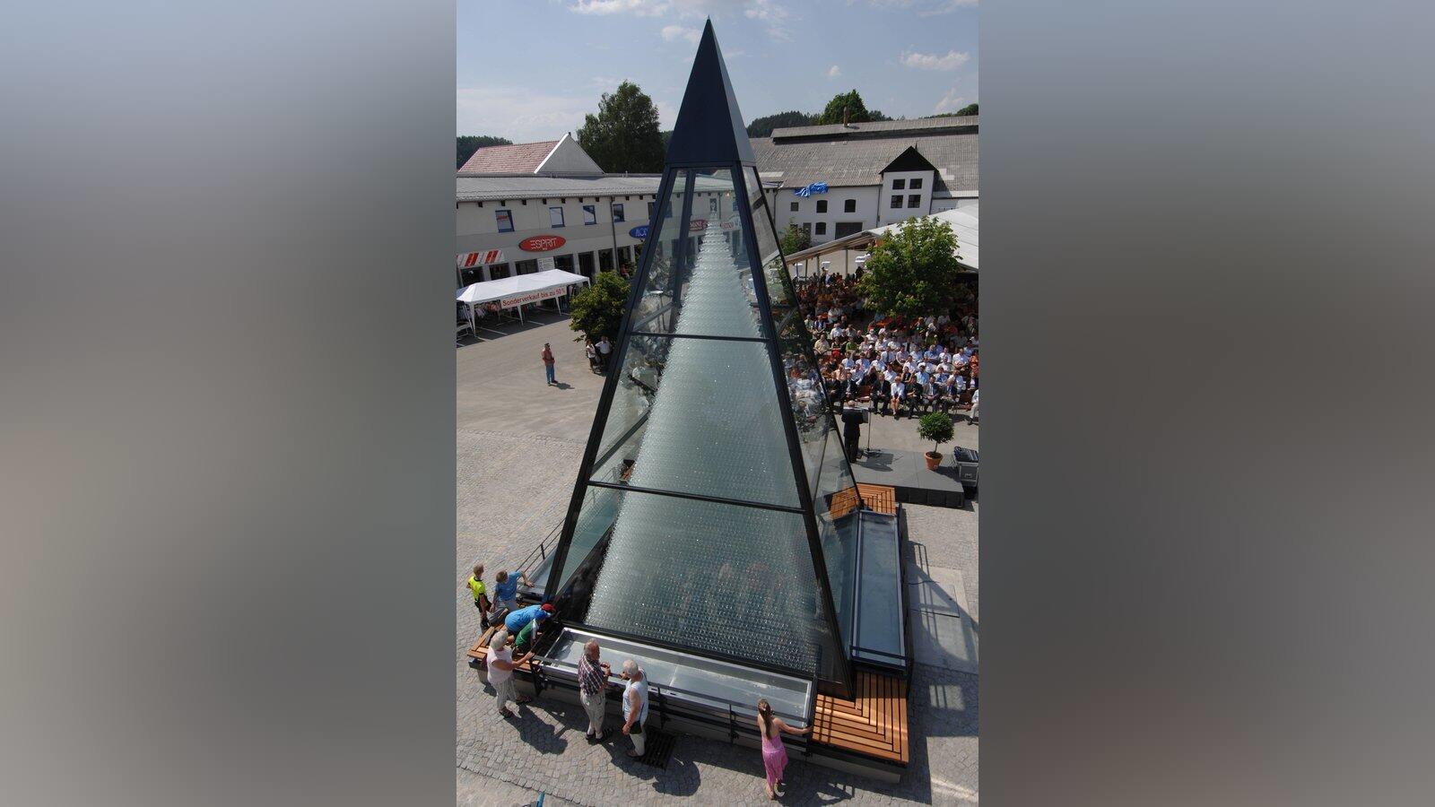 Über acht Meter hoch und bestehend aus 65 Ebenen: die Kristallglas-Pyramide in Zwiesel.
