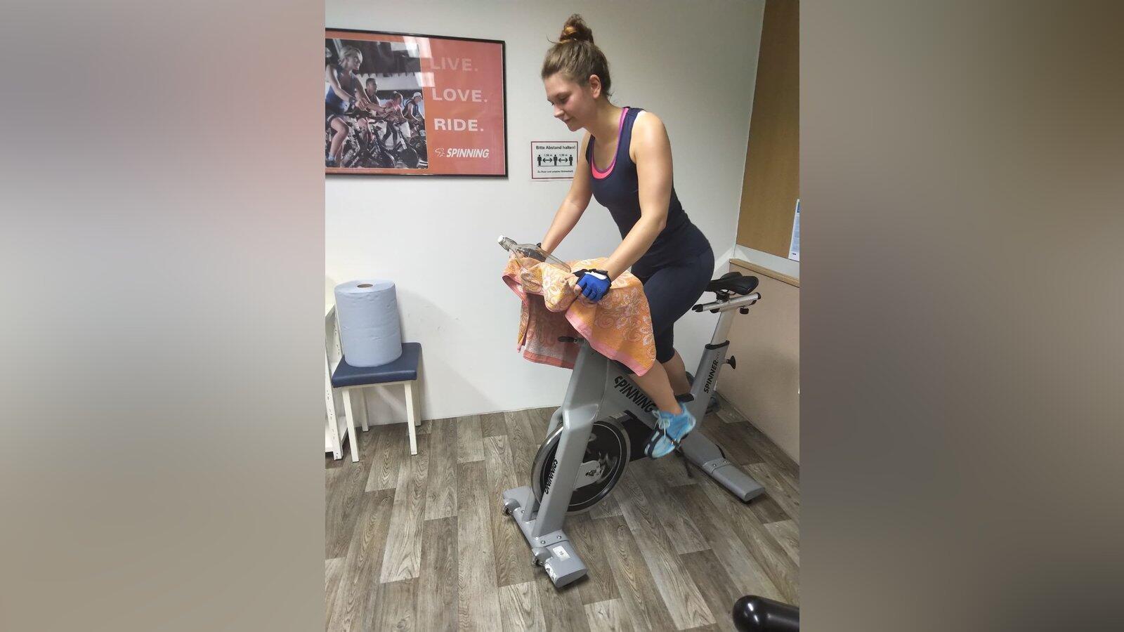 Ganz schön anstrengend: Anna-Lena kann einen Widerstand am Rad einstellen, der bestimmt, wie fest sie in die Pedale treten muss.