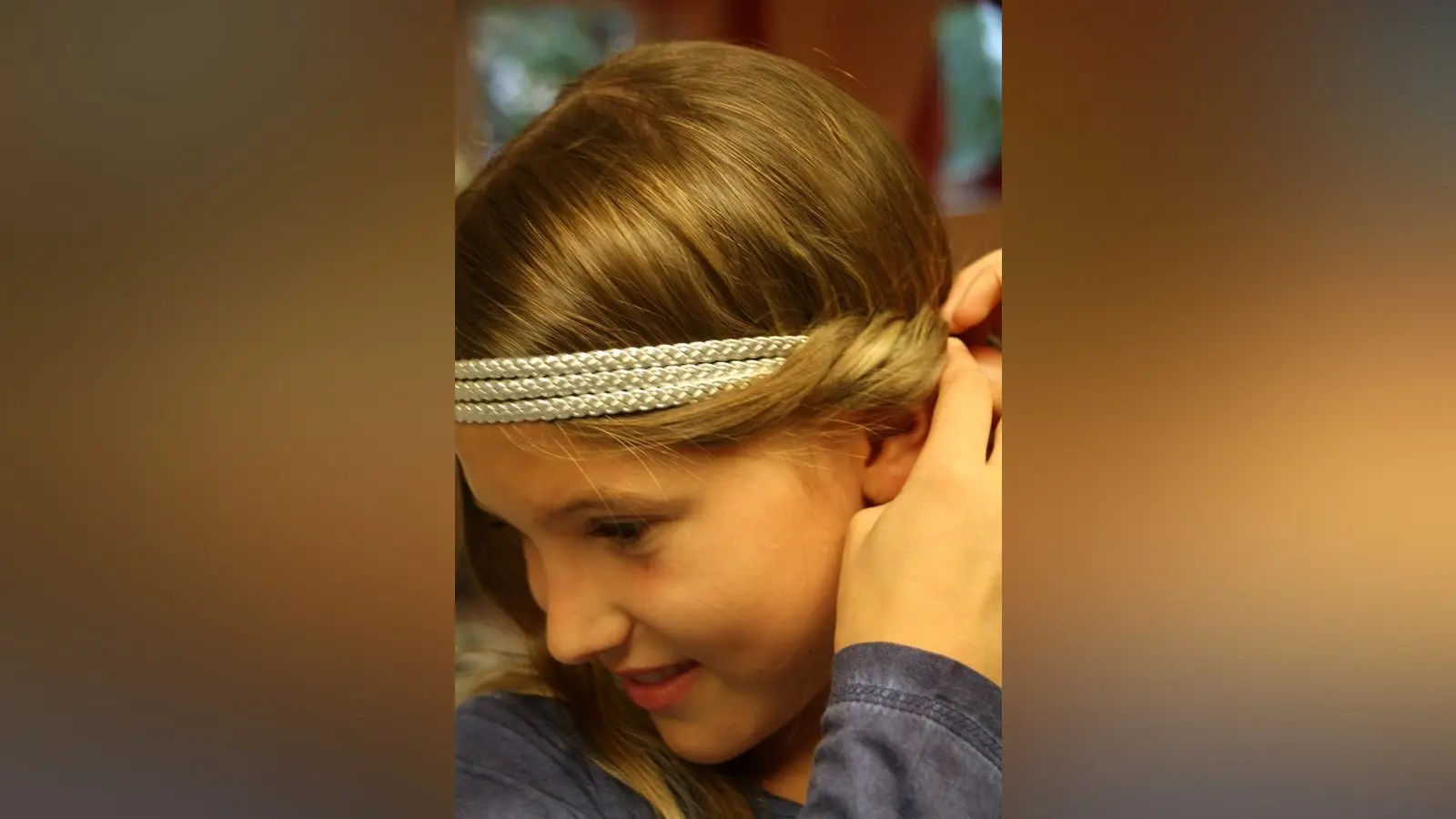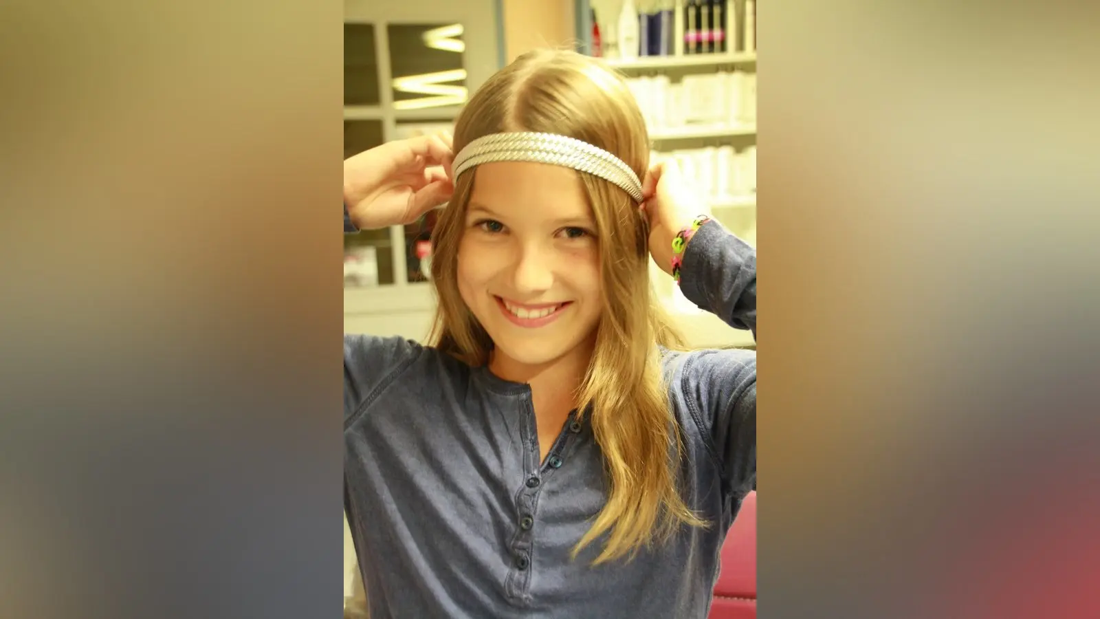 1. Lea nimmt ein gut sitzendes Haarband (nicht zu streng) und schiebt es über Kopf und Stirn.