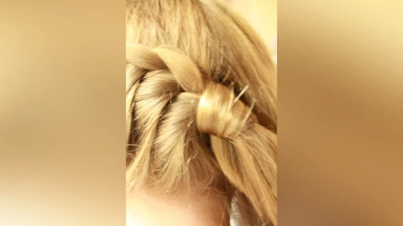 2. Den geflochtenen Zopf fixiert sie mit einem Gummi und umwickelt ihn mit einer Haarsträhne.