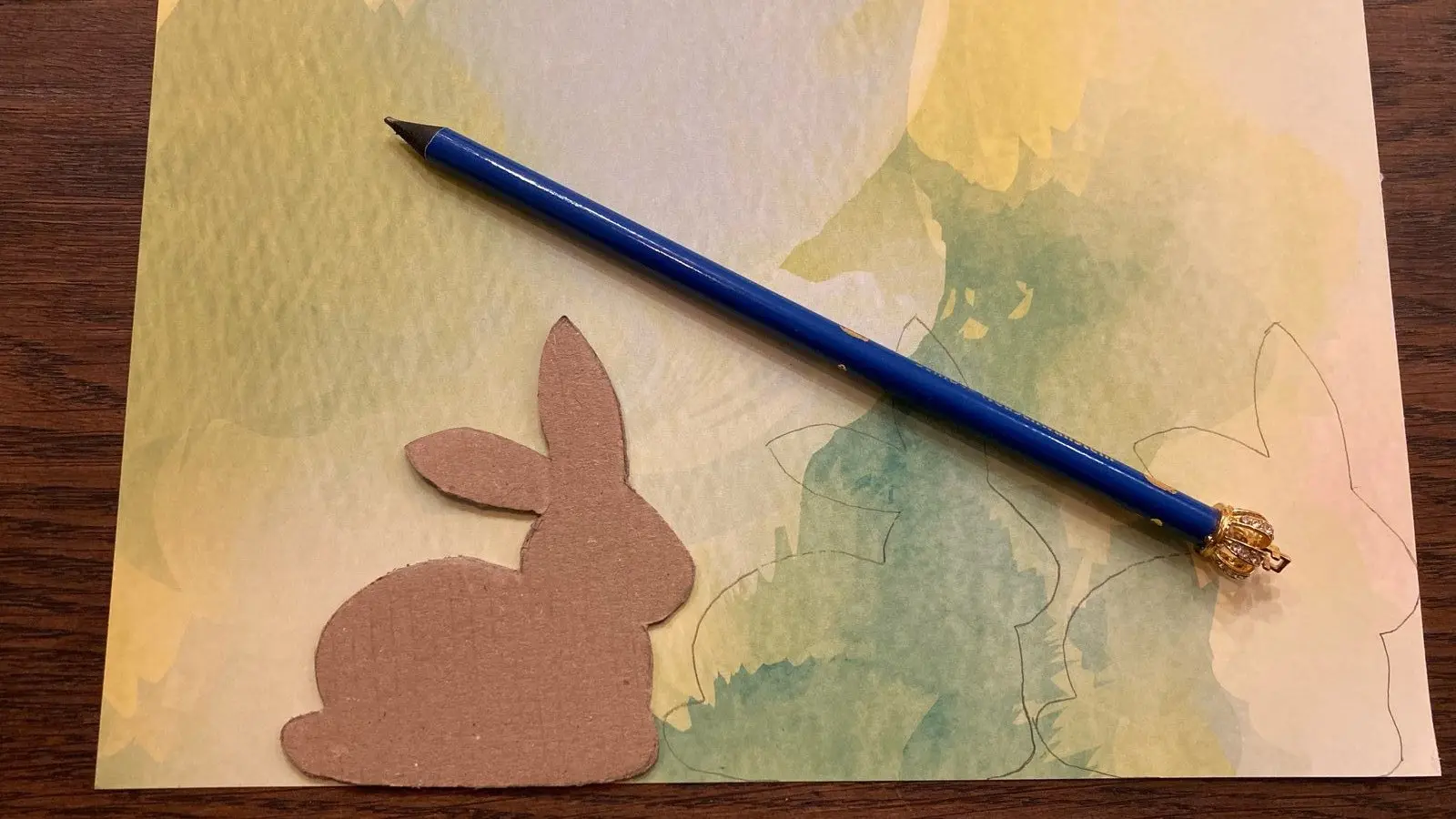 Schritt 2: Die Karton-Vorlage auf das bunte Bastelpapier legen und mit dem Bleistift nachzeichnen.