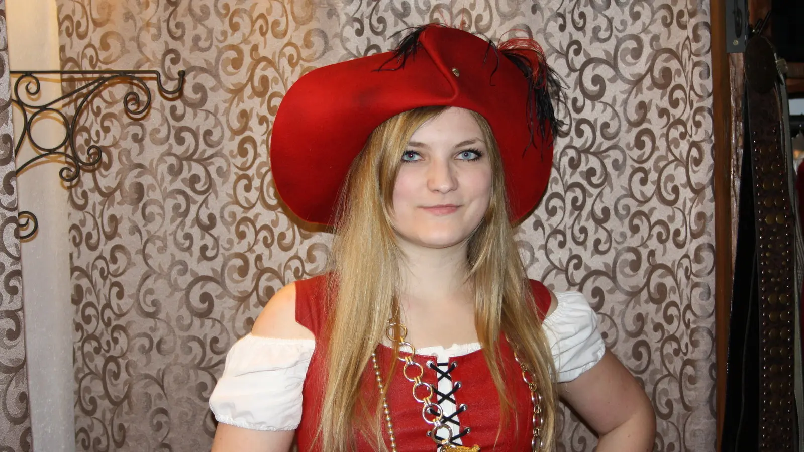 Prinzipiell sind Accessoires sind das A und O, zum Beispiel bei Piraten. Sie machen das Kostüm erst besonders und individuell. Julia bekommt deswegen zu ihrem Piratenmieder und Rock noch einen Hut auf und Ketten und Gürtel umgehängt. Auch der Säbel darf nicht fehlen, um aus ihr eine waschechte Seeräuberin zu machen.
