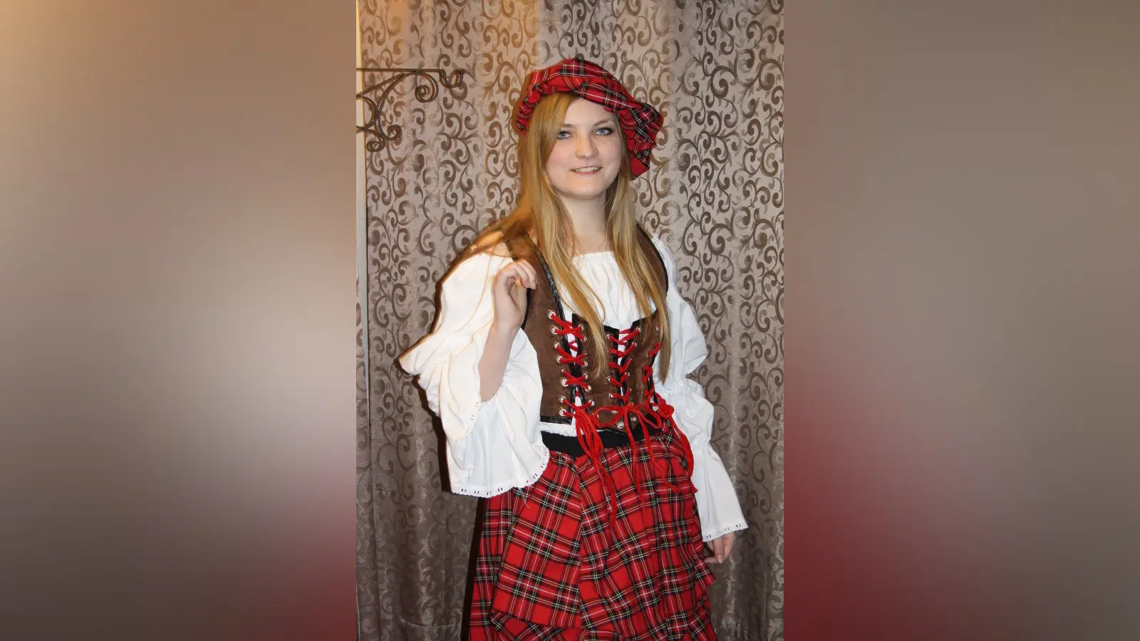Julia dagegen könnte mit ihrem gemusterten Kleid, Mieder und Mütze sofort in den schottischen MacKenzie-Clan aufgenommen werden.