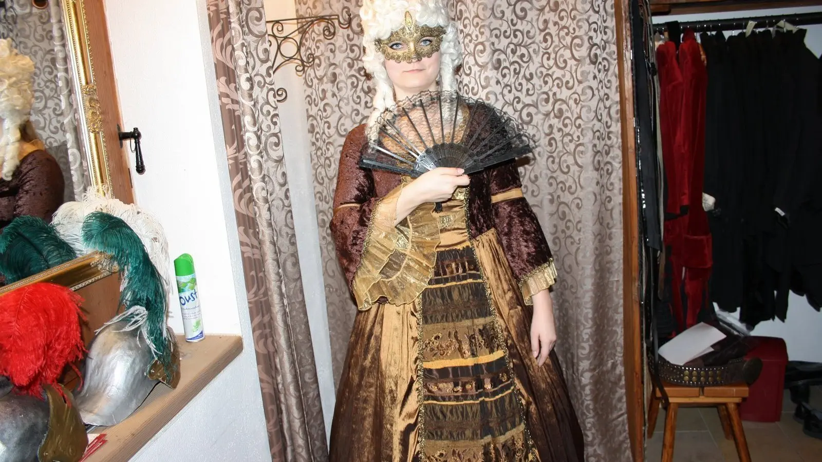 Und auch für Julia liegt ein braunes, venezianisches Samtkleid mit Perücke und Maske bereit. Damit alles historisch korrekt ist, hilft Angelika Rinkl ihr noch in einen echten Reifrock. "Wie sind denn die Frauen damals mit solchen Kleider Treppen gestiegen?", fragt sich die 20-Jährige. Doch auch dazu hat die Expertin einen Tipp: "Den Rock einfach ganz hoch heben und mit den Füßen aufpassen."