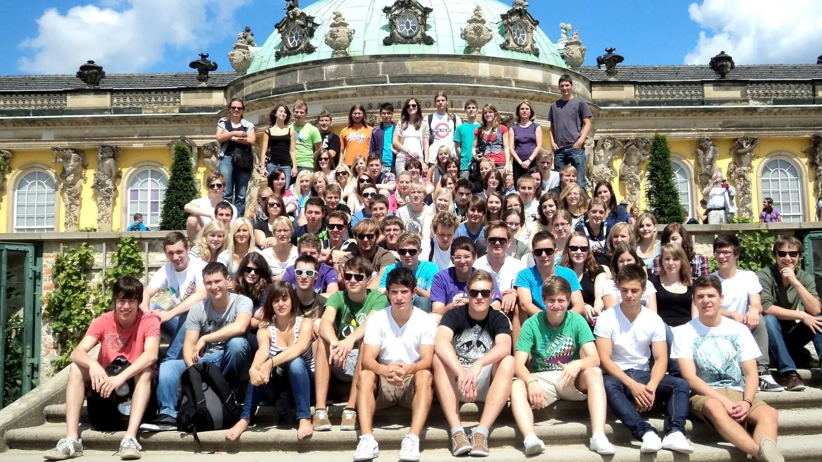 In Berlin angekommen hatten wir täglich einen strammen Plan. So besuchten wir neben dem Mauermuseum Checkpoint Charly und den Fernsehturm am Alexanderplatz auch das Schloss Sansouci in Potsdam. Besonders beeindruckt hat uns die Führung durch den Bundestag. Ein Mitarbeiter des Reichtagsgebäudes erzählte uns im Plenarsaal mehr über die Geschichte des Gebäudes, so auch über den Bundesadler, die "fette Henne", wie er ironisch von den Bundestagsabgeordneten genannt wird und der den Plenarsaal ziert. Ein Gebilde aus Spiegeln im Inneren der Kuppel des Reichtagsgebäudes dient einem dort integrierten Energiekonzept. Am Ende der Reichtagsbesichtigung gönnten wir uns vor dem Brandenburger Tor eine Breze, die fast so groß war wie unsere Volksfestbrezen - ein Stück Heimat in Berlin.