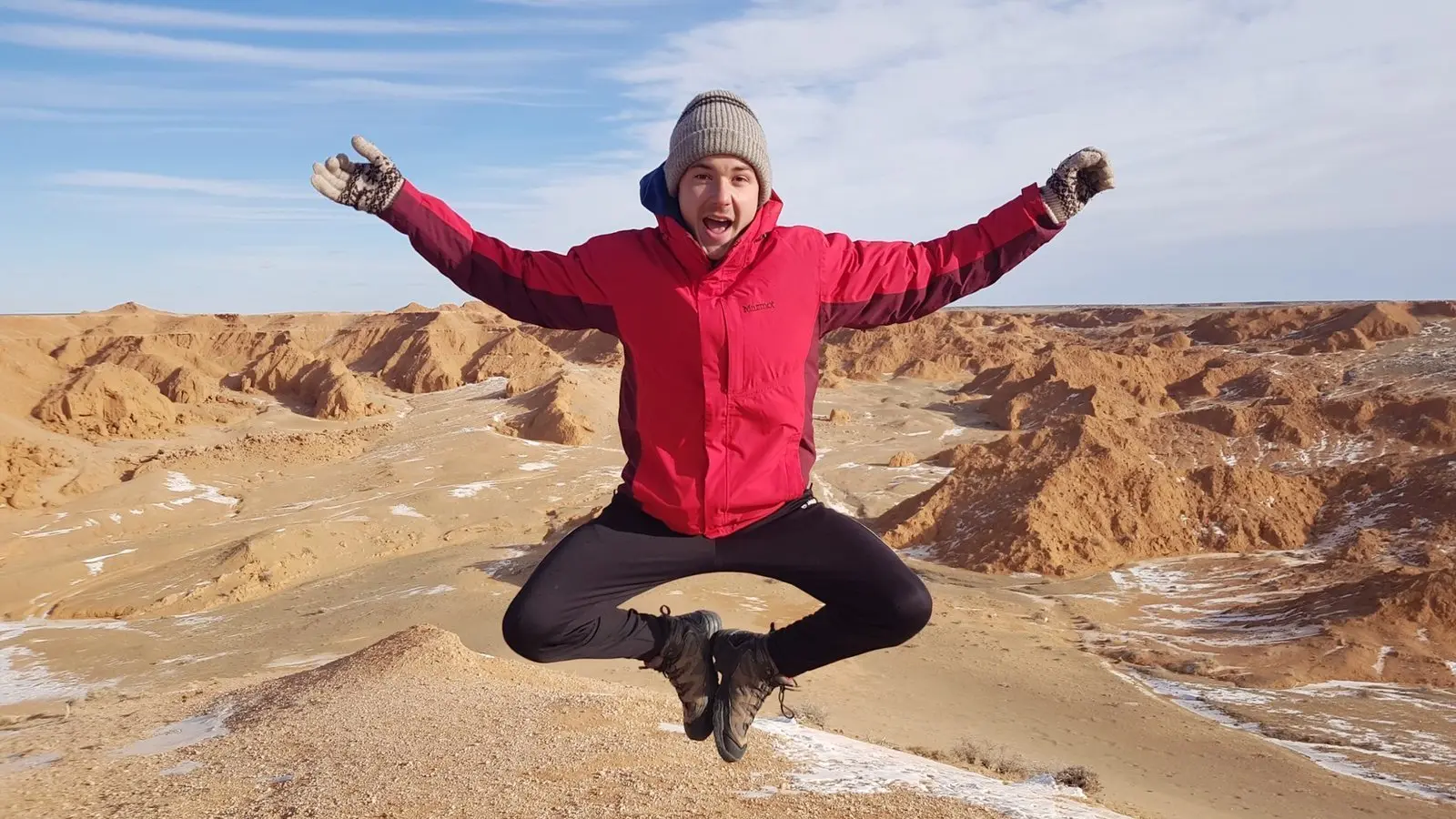 Das hat auch geklappt - übrigens ohne zu frieren. Denn dank einer langen Unterhose aus Kamelwolle, die er aus der Mongolei mitgebracht hat, fror ihn beim Snowboarden nicht. Im Gegenteil, die lange Unterhose musste er sogar ausziehen. Temperaturen um den Gefrierpunkt sind harmlos, verglichen mit den minus dreißig Grad Celsius, die das Thermometer in den Wintermonaten in der Mongolei leicht erreichen kann.
