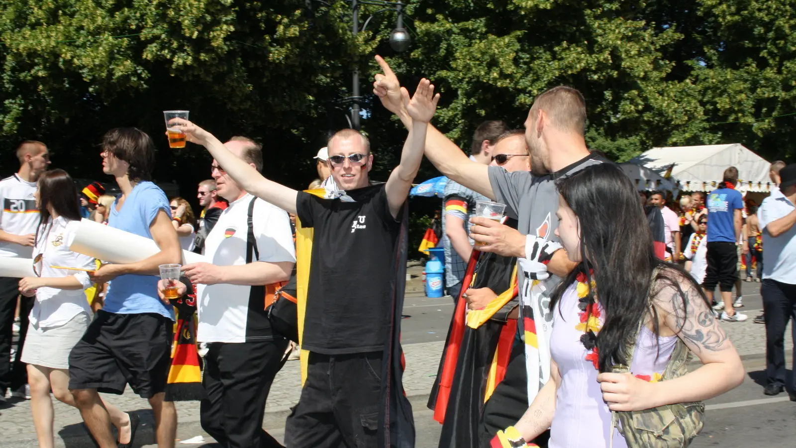 Fangesänge im Fahnenmeer und dabei große Freude: Wildfremde Menschen fielen einander in die Arme, die Fans hüpften und verteilten großzügig Bierduschen. Der Euphorie tat auch der Anschlusstreffer der Engländer keinen Abbruch, das nicht gegebene Tor für England geht in der Freude unter. Nach Ende des Spiels starteten, wie überall in Deutschland, mit Fahnen geschmückte Autos zu Rundfahrten durch die Großstädte.