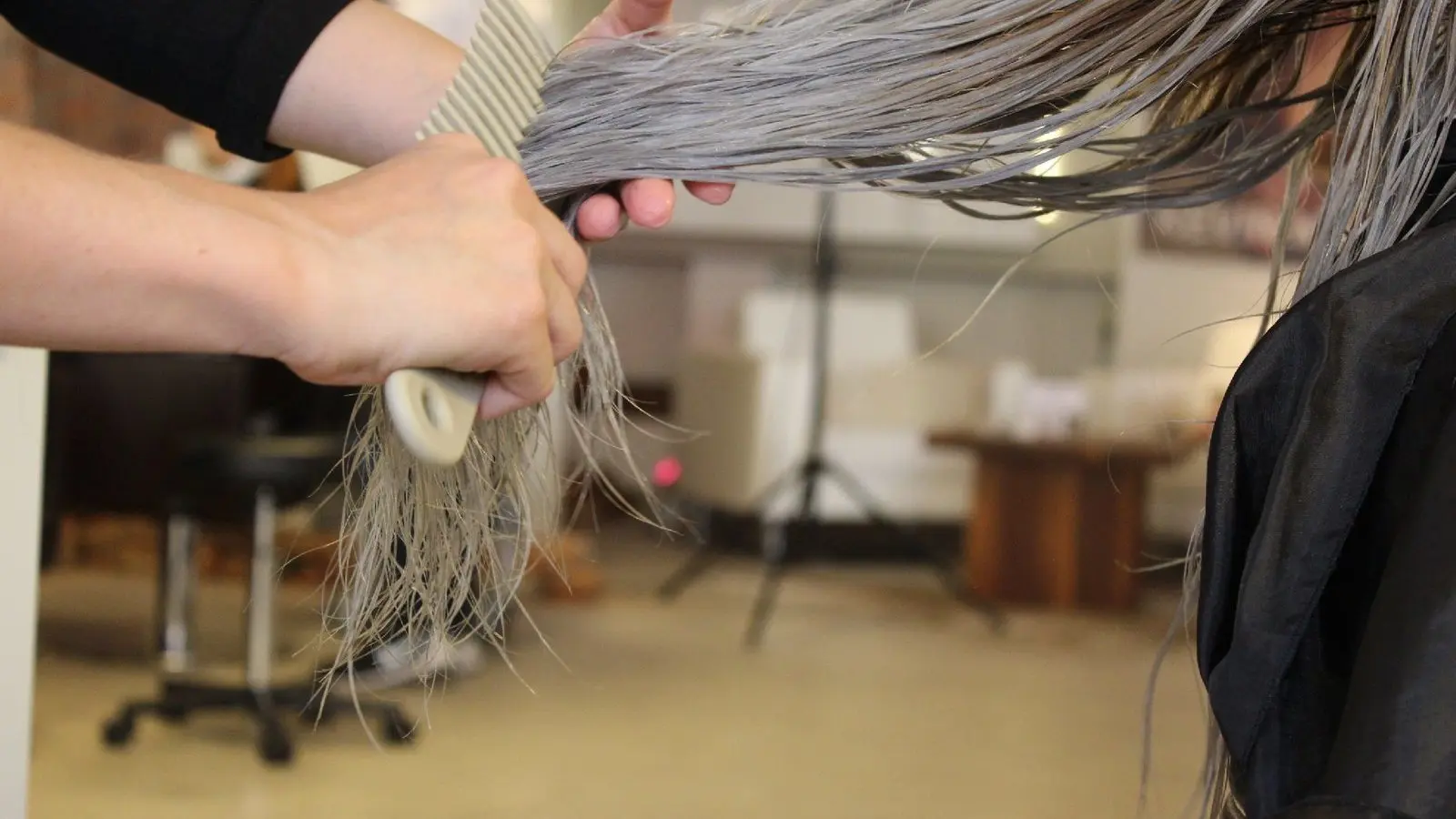 Natürlich kursieren im Internet viele Anleitungen zum Selbermachen. Davon solltest du allerdings die Finger lassen, wenn du willst, dass es gut aussieht. Deine Haare müssen sehr stark blondiert werden, damit die graue Farbe hält und richtig zur Geltung kommt. "Wenn in den Haaren noch zu viele Goldpigmente sind, dann bekommen die Haare möglicherweise einen orangefarbenen oder gelblichen Ton", erklärt Maximilian Grünberger. Das sieht dann nicht gut aus. Die Haare müssen so lange blondiert werden, bis alle Pigmente verschwunden sind.