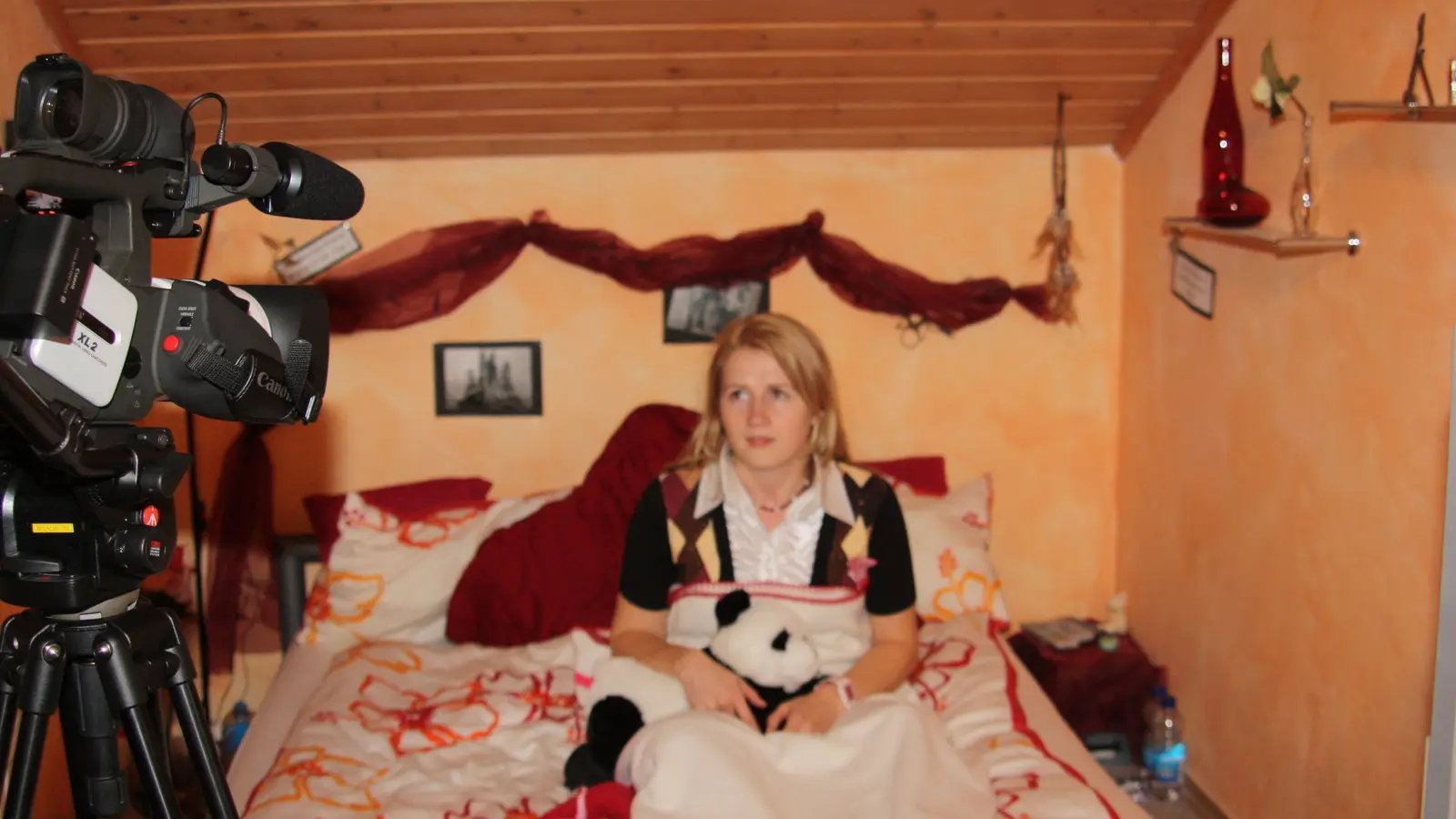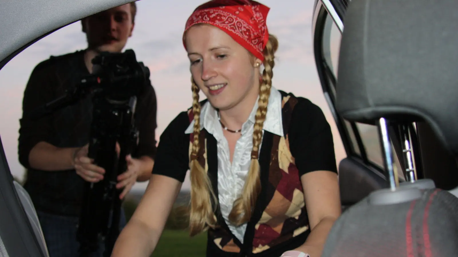Das wichtigste, was ein Rot-Zöpfchen braucht, um dem richtigen Rotkäppchen sehr ähnlich zu sein, ist eben ein rotes Käppchen. Ich bin zwar mit zwei proppevollen Koffern nach Straubing gekommen, aber eine rote Kopfbedeckung habe ich wohl nicht dabei. Aber schon im ersten Einkaufszentrum ist dieses Problem gelöst. Denn ein rotes Sommer-Tüchlein muss RAUS, um den dicken Wintermützen Platz zu machen! Nur noch zwei Zöpfe flechten, ein mädchenhaftes Röckchen anziehen und schon brechen wir auf zum Dreh.