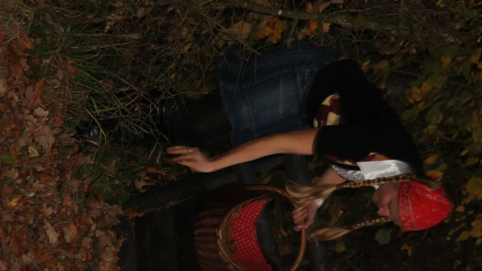 Inzwischen ist es so dunkel, dass wir ohne Taschenlampe nicht mal einander sehen können. Umso besser, denn es soll noch scheußlicher werden. Der böse Wolf kommt. Laut hauchend rennt er durch den Wald, was ich vorerst eher komisch finde. Aber nicht lange. Als er mich laut brüllend mit einem Messer verfolgt und mir seine Hand von hinten auf die Schulter packt, fällt mir das schallende Schreien nicht schwer. Gut, dass weit und breit niemand wohnt, sonst wäre die Polizei längst alarmiert worden...