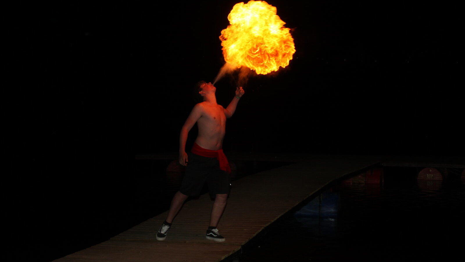 Nach und nach hat sich die Gruppe zusätzliche Ausstattung besorgt. "Wir wollen eben immer professioneller werden", bekräftigt Josef. Zum Einsatz kommen unter anderem Feuerkreise, Seile, Lang- und Kurzdochtstäbe, Streuer und Fächer. "Damit die Sachen brennen, tränken wir sie mit Lampen-Öl", informiert Jonas. Die Mädels sind für den graziösen Teil der Show zuständig. "Die Jungs übernehmen den wilden und gefährlicheren Part", sagt Josef und grinst. Das Feuerspucken als Höhepunkt des Auftritts sehen die beiden Verantwortlichen als Königsdisziplin. Mit sogenanntem Pyrofluid, eine brennbare, flüssige Substanz, versuchen die jungen Künstler riesige Flammen zu spucken. "Das wird schon zur Sucht und ist ein super Gefühl, wenn man vor dem Publikum steht und alle staunen beim Feuerspucken", schwärmt Josef.