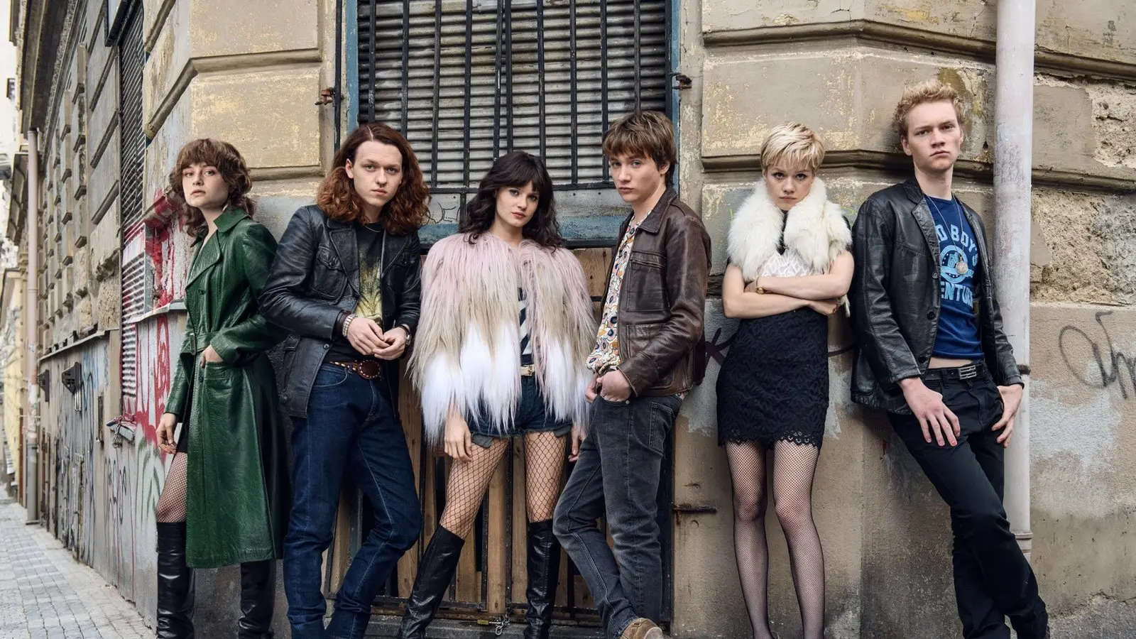 Christiane F. (Jana McKinnon, Dritte von links) und die Clique in der Serie: Stella (Lena Urzendowsky), Axel (Jeremias Meyer), Benno (Michelangelo Fortuzzi), Babsi (Lea Drinda) und Michi (Bruno Alexander, von links).
