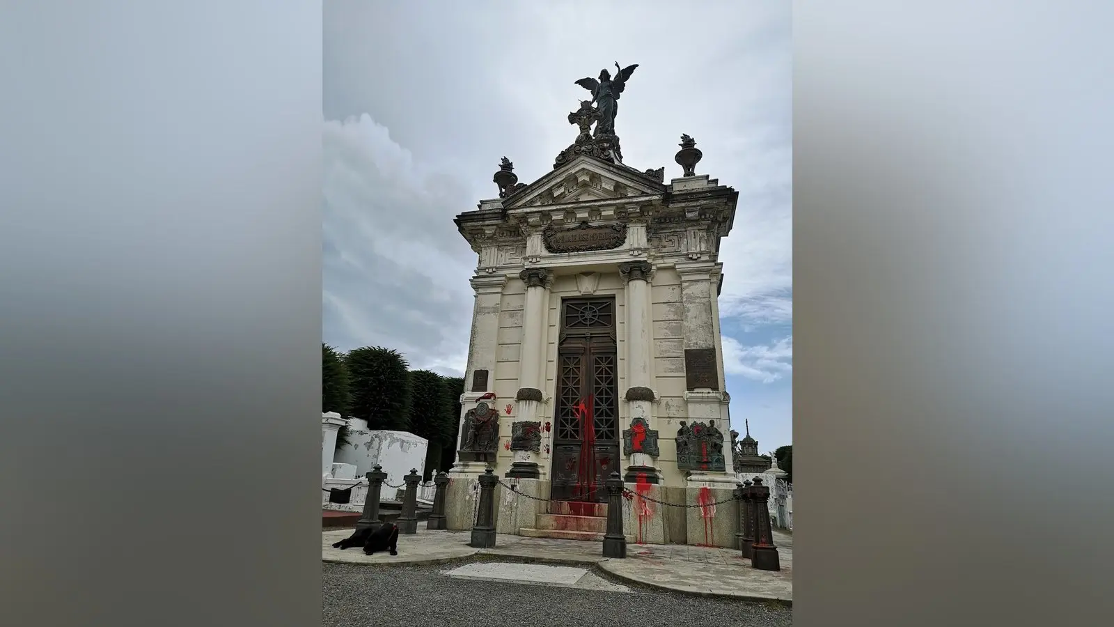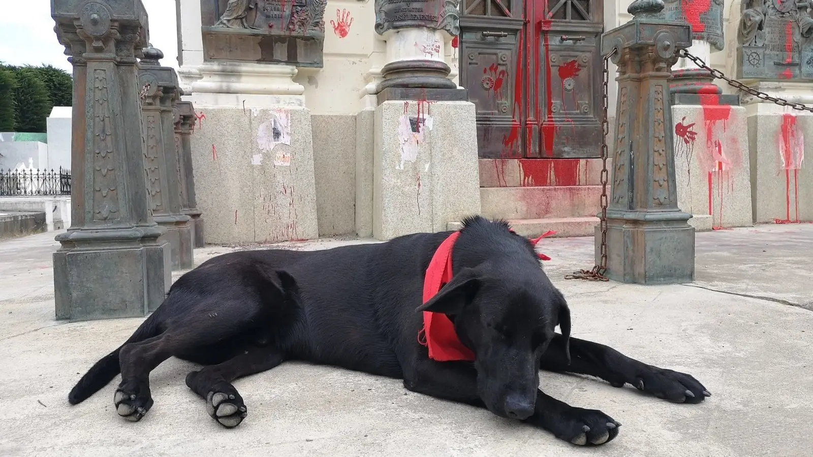 Auf dem Friedhof, mit seinen beeindruckenden Gruften eine der Hauptattraktionen der Stadt, entdecken wir weitere Spuren der blutigen Botschaft auf dem Mausoleum der Familie Menéndez, historisch eine der einflussreichsten der Gegend, die laut neueren Forschungen auch maßgeblich am Genozid am indigenen Volk Selk'nam beteiligt war. Davor schläft seelenruhig ein pechschwarzer Hund mit rotem Halstuch. Auch wenn sich über die drastische Methode streiten lässt, bietet sich uns ein eindrucksvolles Bild. Denn dieser Hund ist nicht irgendein Straßenhund: Genau wie das Auge in Erinnerung an die verlorenen Augen oder der Alien - Piñeras Frau bezeichnete die Demos vor Monaten als "Alien-Invasion" - ist er eines der wichtigsten Symbole des chilenischen Protests.