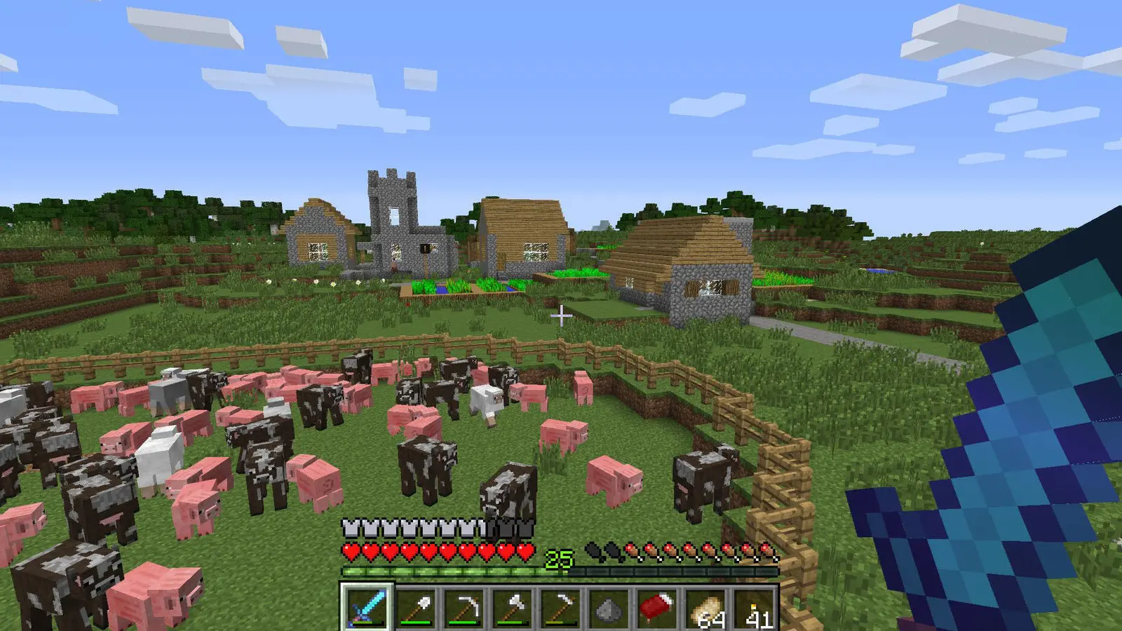 Kämpfen: Wer es ruhig mag, wird Minecraft mögen. Aber wer sich mit anderen messen möchte, dem kann Minecraft ebenfalls Spaß machen. Im Multiplayer-Modus kann man im PvP, Player versus Player, gegen andere Spieler antreten und dabei verschiedene Taktiken testen. Auch die Auswahl an Waffen ist groß - von Schwert über Axt bis Armbrust. Die kann man selbst erschaffen und verbessern.