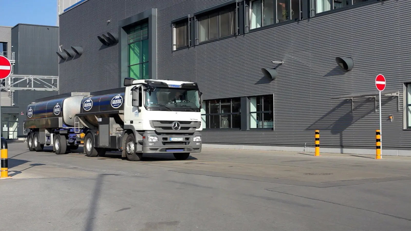 - Erreicht ein Milchsammelwagen das Werk, erfolgt die nächste Kontrolle. Ein erneuter Test soll Aufschluss über mögliche Hemmstoffe geben. Erst nach einer Freigabe wird die Milch in einen Sammelwagen abgetankt. Auch hier registriert ein raffiniertes System sämtliche Daten über Fahrer, Route und Milchinhalt. Durch diese Kontrollen bleiben die hohen Ansprüche an das Produkt von Beginn an erfüllt.